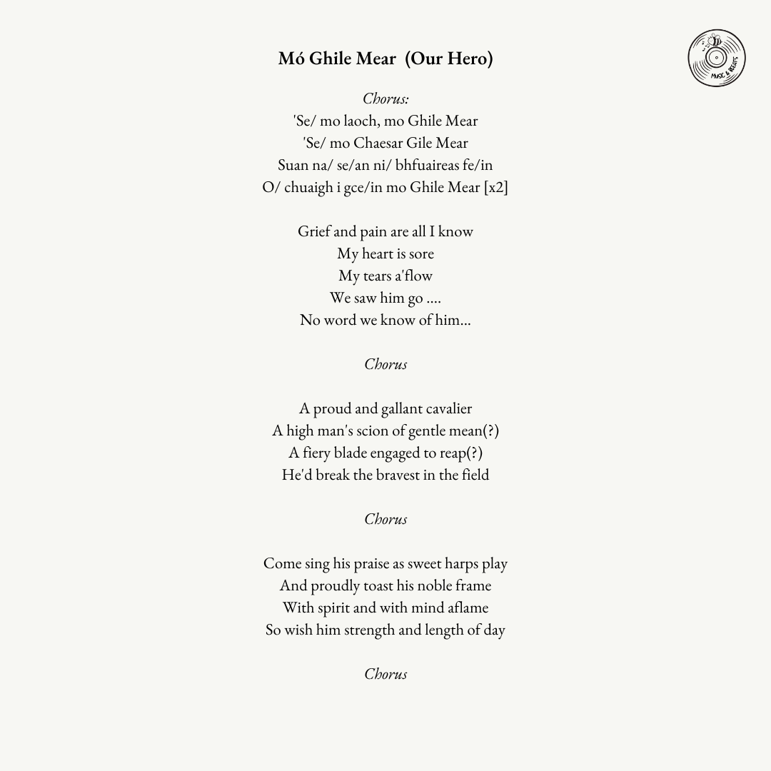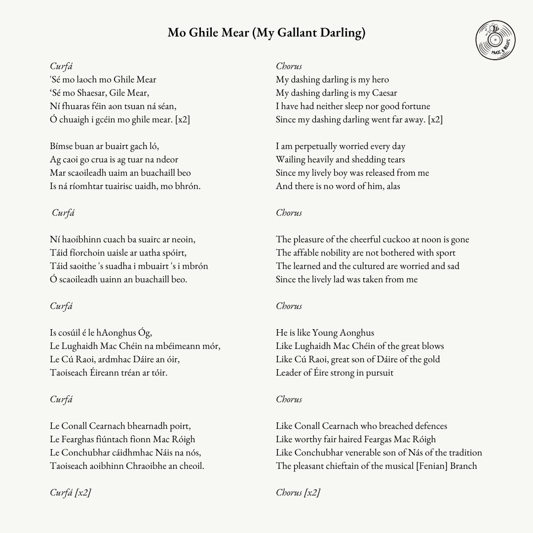 Lyrics taken from: https://songsinirish.com/mo-ghile-mear-ucd-lyrics/.