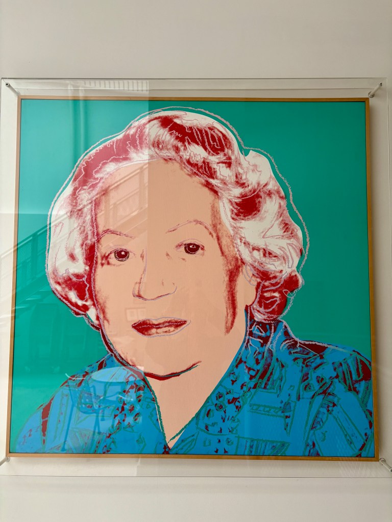 But who was Paul Sacher, really? I kept asking myself this throughout the visit, as I knew little about him until that moment. Sacher was a Swiss conductor and musicologist, born and raised in Basel (1906–1999). Although he founded the Basler Kammerorchester (Basel Chamber Orchestra) in 1926, the Zurich Chamber Ensemble, and later the Schweizerisches Kammerorchester (Swiss Chamber Orchestra), he is primarily remembered for his significant influence as a patron of the arts, having commissioned numerous works from composers of his time. Coming from a modest family, his life changed when he married Maja Hoffmann-Stehlin, widow of Emanuel Hoffmann, son of Fritz Hoffmann, the founder of the pharmaceutical company Roche, now globally renowned. Emanuel Hoffmann died in a car accident, leaving Maja in charge of the company. Upon marrying her—a philanthropist, sculptor, and art collector—Sacher gained access to Roche’s administration. Over time, he secured a majority position in the company, making him one of the richest men in Europe after World War II. Sacher’s high-ranking position at Roche facilitated his role as a patron of the arts, and his circle of friends included some of the most influential composers of the 20th century. Upon entering the foundation’s building, a portrait in the main hall caught my attention—the colors and brushstrokes seemed familiar. As I approached, I realized it was a portrait of Maja Sacher, painted by none other than Andy Warhol. Although I knew little about the Sacher family’s private lives, the painting’s presence made me grasp their immense significance in 20th-century Western Europe.